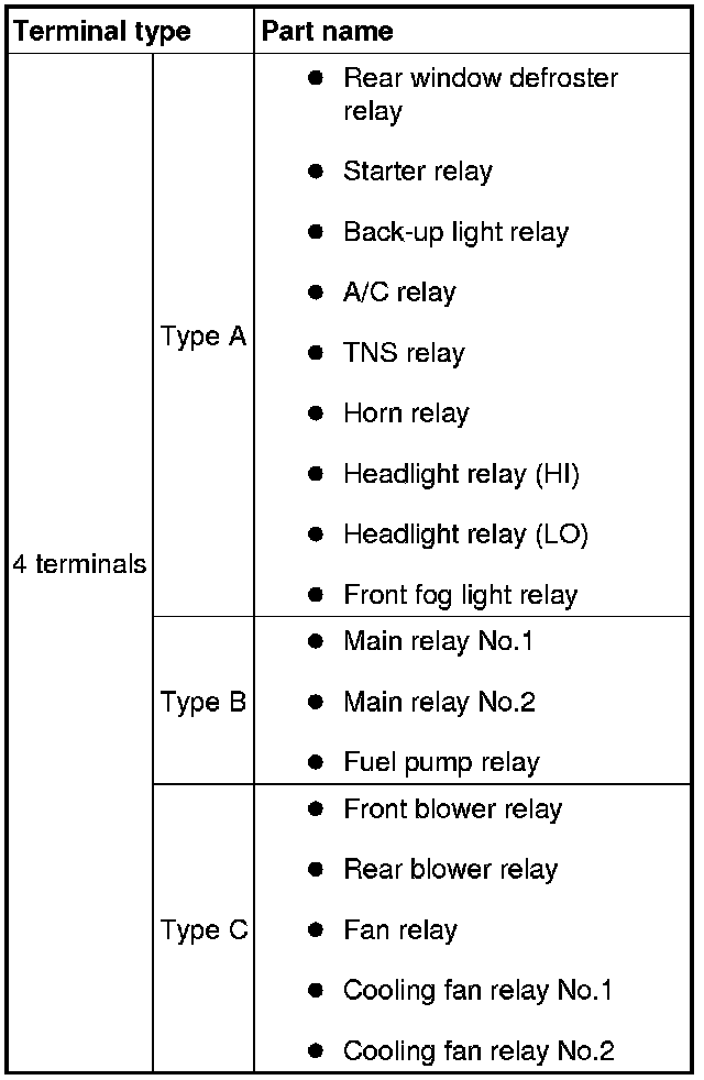 - If not as indicated in the table, replace the relay.