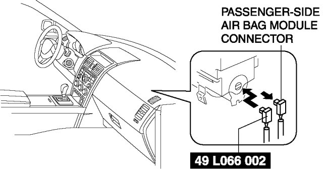 2. Disconnect the passenger-side air bag module connector.