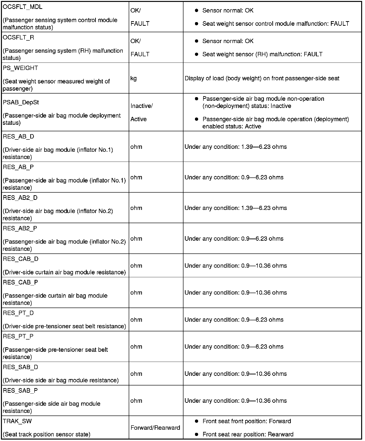 Used during seat weight sensor calibration setting. Not necessary for diagnostic.