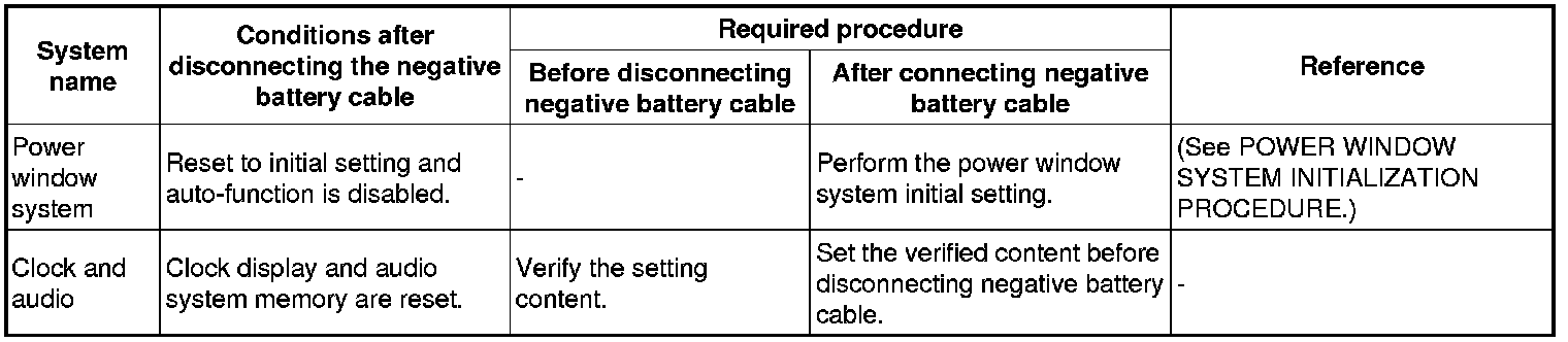 Negative battery cable disconnection/required procedures after connecting