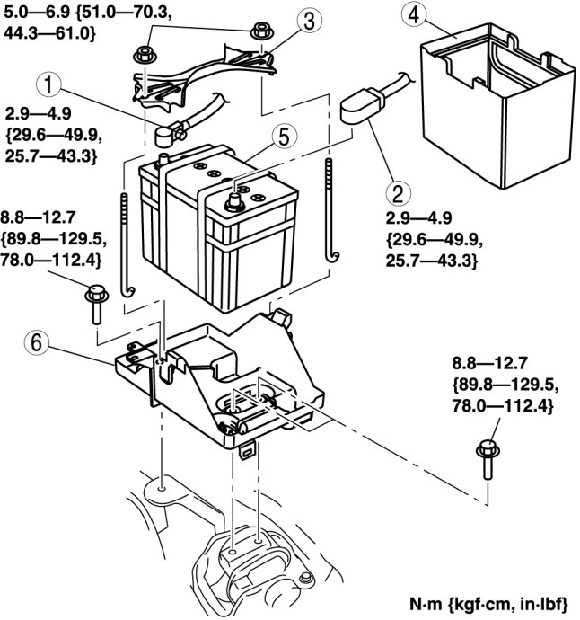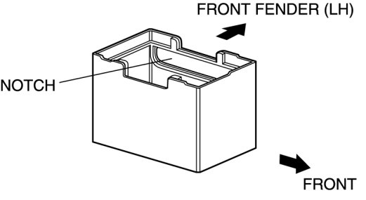 1. Install the battery box so that the side with the notch points toward the front fender (LH).