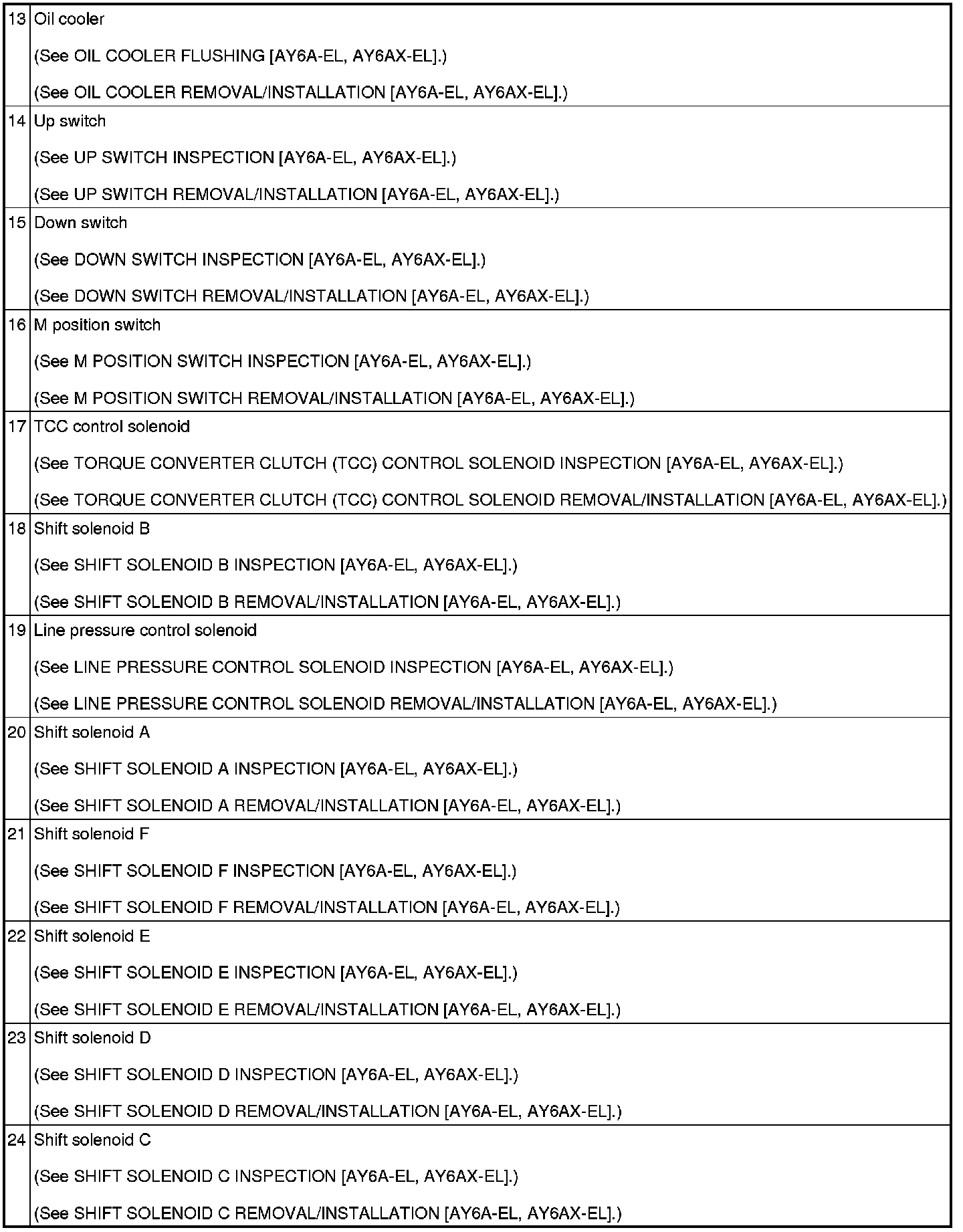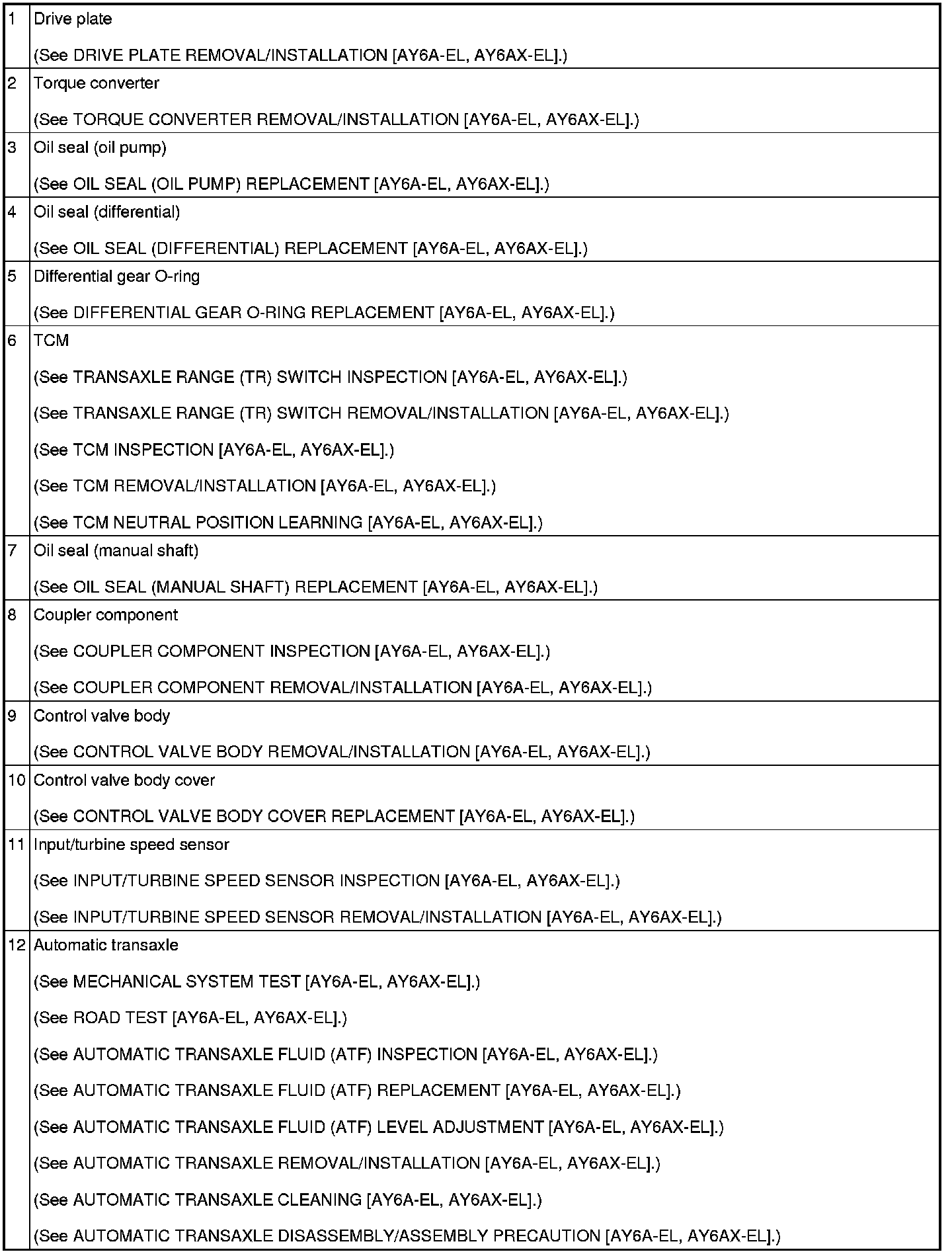 AUTOMATIC TRANSAXLE LOCATION INDEX [AY6A-EL, AY6AX-EL]