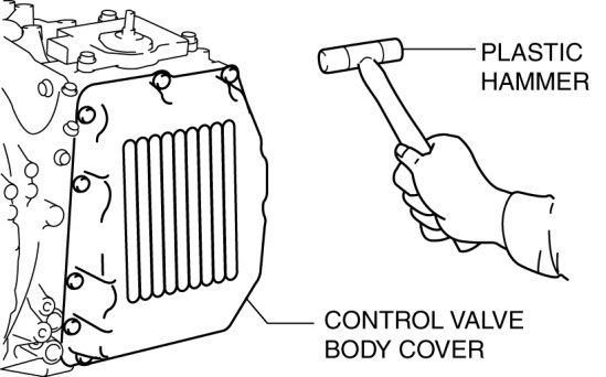 11. Using a plastic hammer, tap the control valve body cover to remove it.