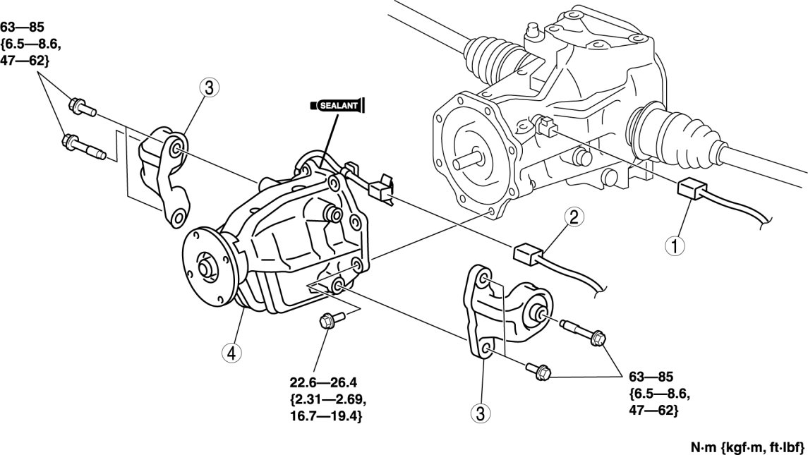 - 22.6-26.4 Nm {2.31-2.69 kgf-m, 16.7-19.4 ft-lbf}