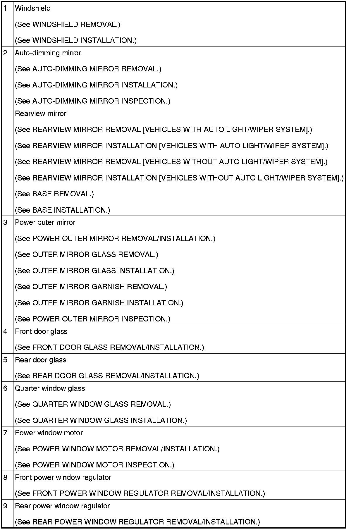 GLASS/WINDOWS/MIRRORS LOCATION INDEX