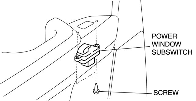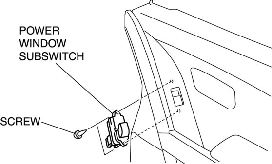 4. Remove the screw, and remove the power window subswitch from inside the front door trim.