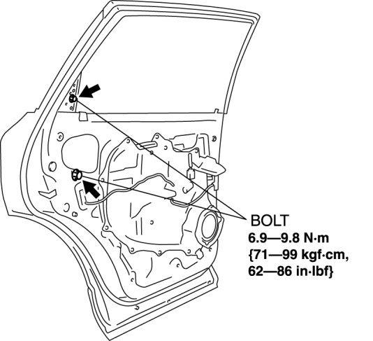 5. Remove the rear door trim. Rear Door Trim Removal/Installation