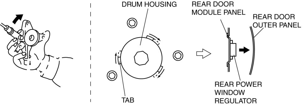 REAR POWER WINDOW REGULATOR REMOVAL/INSTALLATION