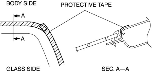 - Before removing the windshield from the body, mark the position of the windshield by affixing tape to the windshield and body panel.