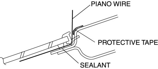 - For the areas of the sealant that are difficult to cut, use thepiano wire and follow the procedure under "Reusing Windshield".