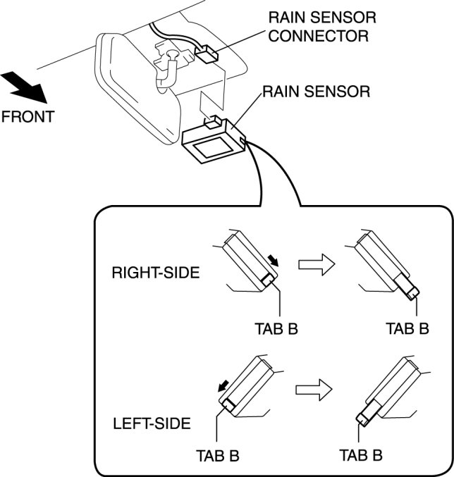 4. Slide both tabs located on each side of the rain sensor in the direction of the arrow and remove the rain sensor.