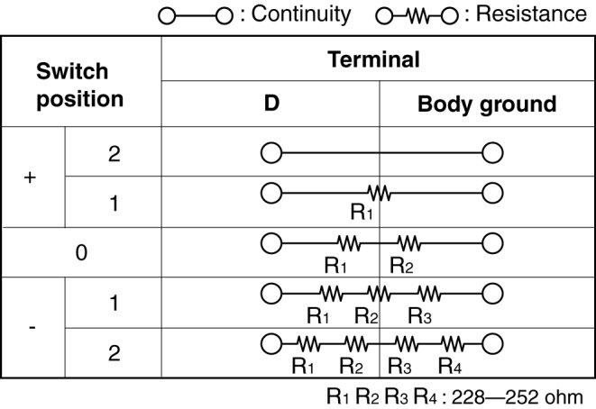 - If not as indicated in the table, replace the wiper and washer switch. Service and Repair