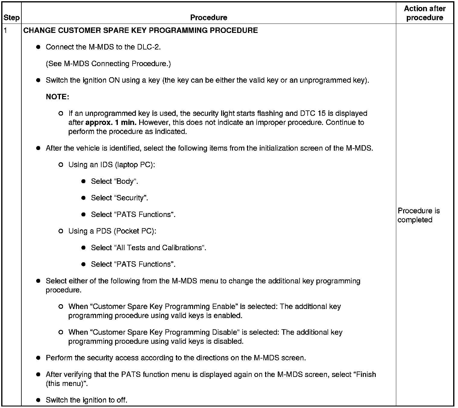 - If "Customer spare key programming disable" is selected, perform additional key programming using the M-MDS.