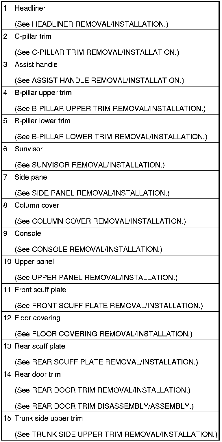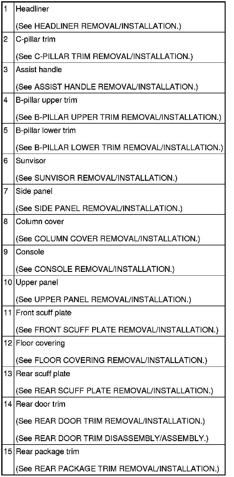 INTERIOR TRIM LOCATION INDEX