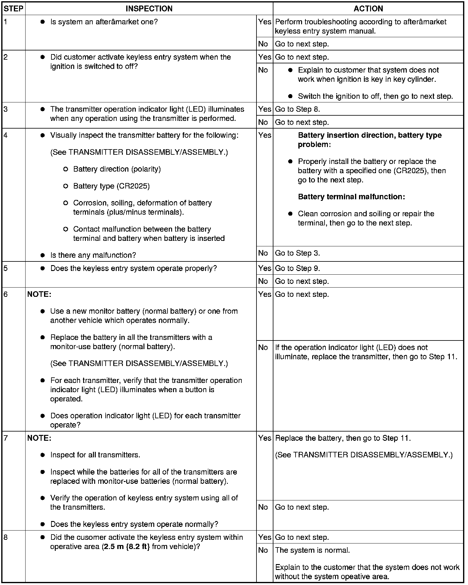KEYLESS ENTRY SYSTEM PRELIMINARY INSPECTION [KEYLESS ENTRY SYSTEM]