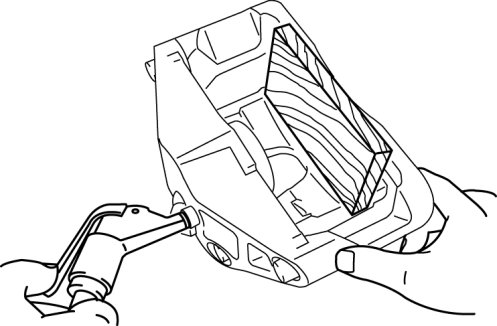 1. Insert a piece of wood in the caliper as shown in the figure and blow compressed air through the bleeder screw installation hole to remove the piston from the caliper body.