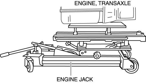 8. To firmly support the engine, first set the engine jack to the oil pan.