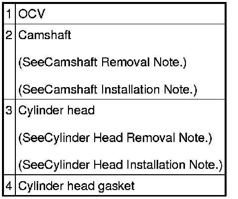 1. Loosen the camshaft cap bolts in 2-3 steps in the order shown in the figure.