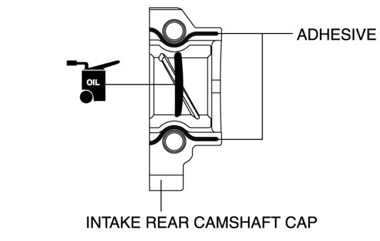 1. Apply the gear oil (SAE No. 90 or equivalent) to each journal of the cylinder head as shown in the figure.