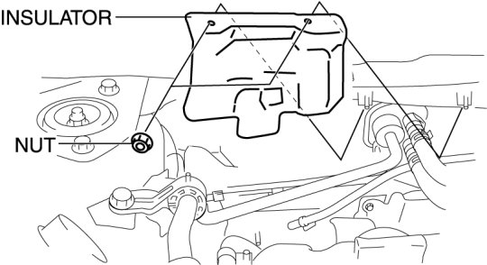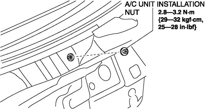 11. Remove the A/C unit installation nut from the engine compartment, then remove the A/C unit.