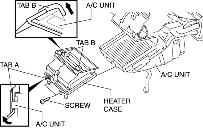 - Pull up tabs B in the direction shown by the arrow in the figure and remove it from the A/C unit.