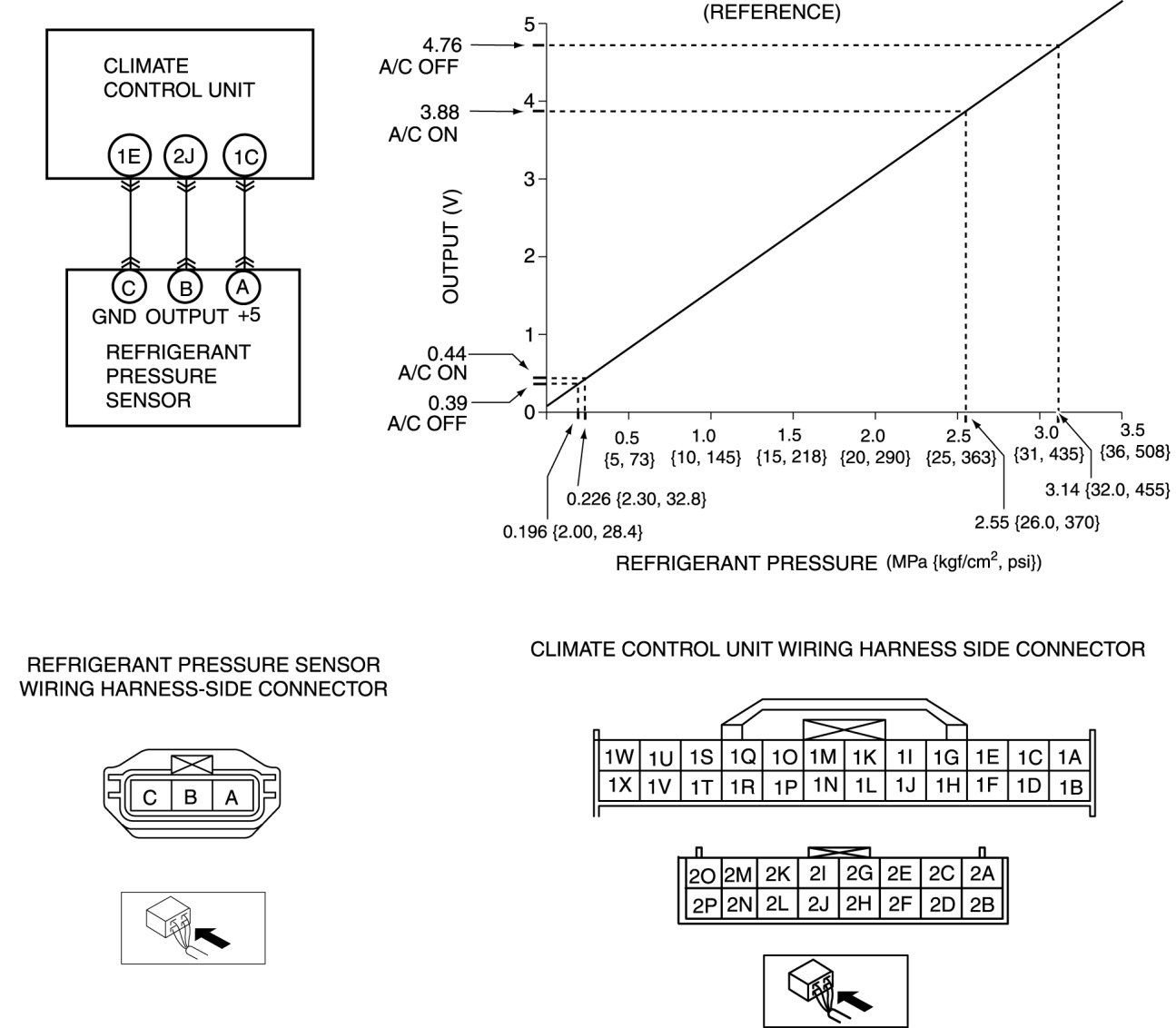 - If wiring harness is normal, replace the refrigerant pressure sensor.