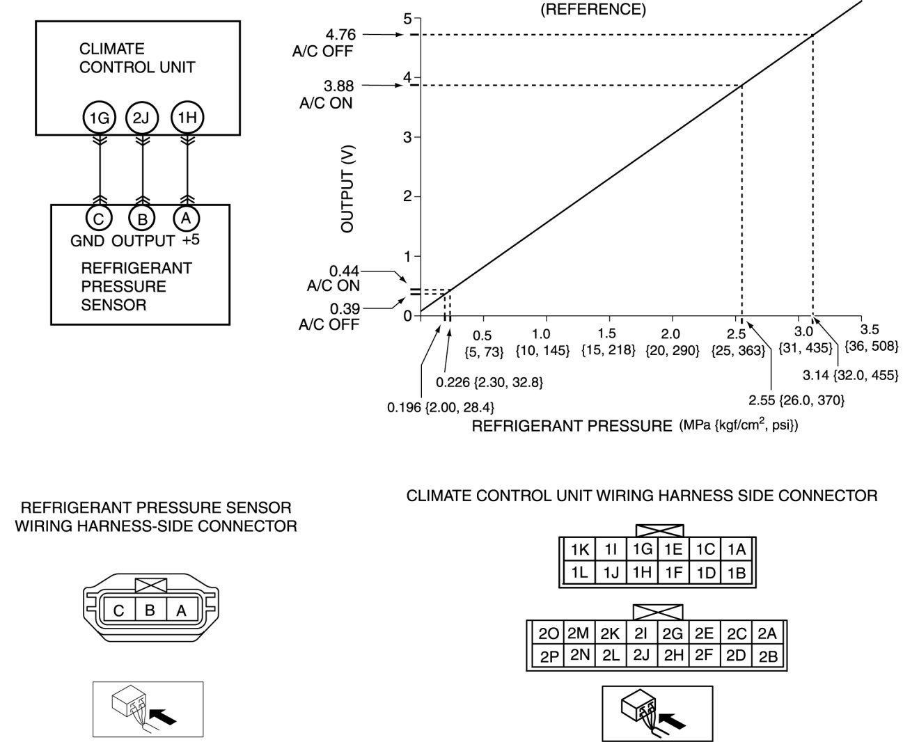 - If wiring harness is normal, replace the refrigerant pressure sensor.