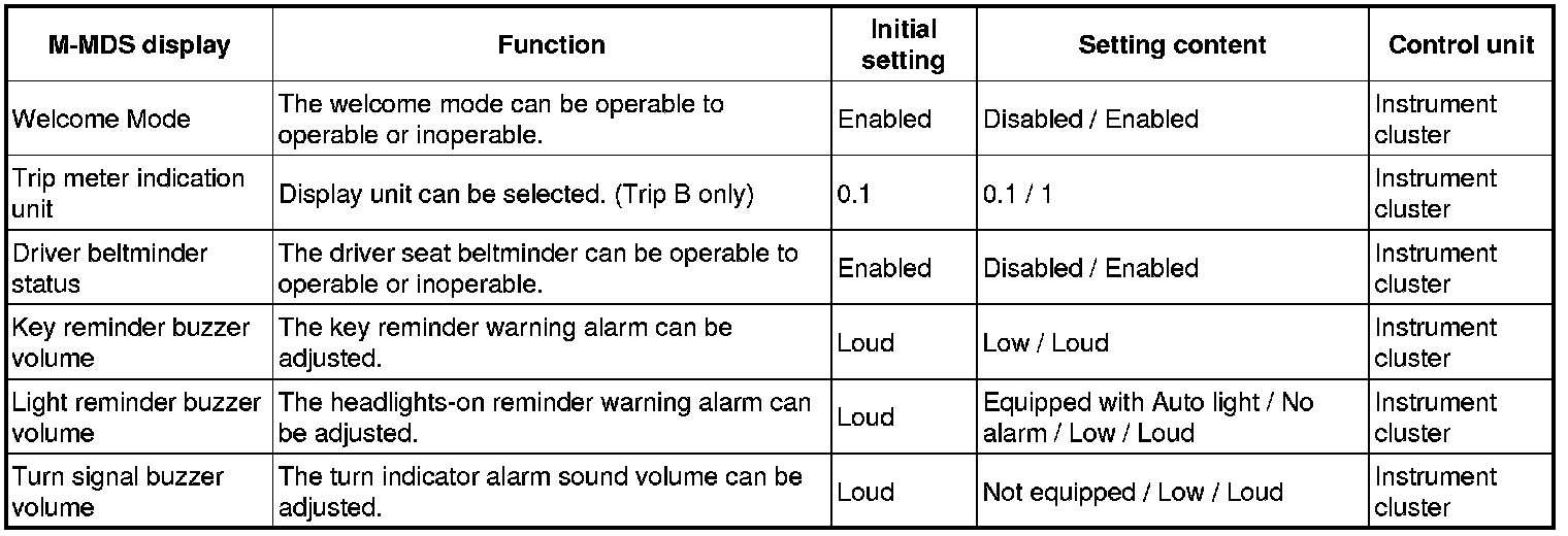 INSTRUMENTATION/DRIVER INFO. PERSONALIZATION FEATURES SETTING PROCEDURE