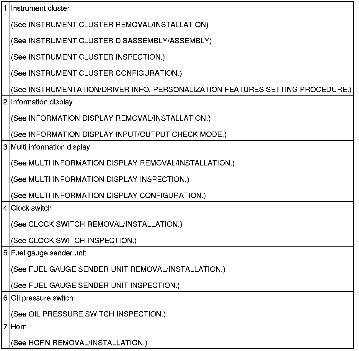 INSTRUMENTATION/DRIVER INFO. LOCATION INDEX