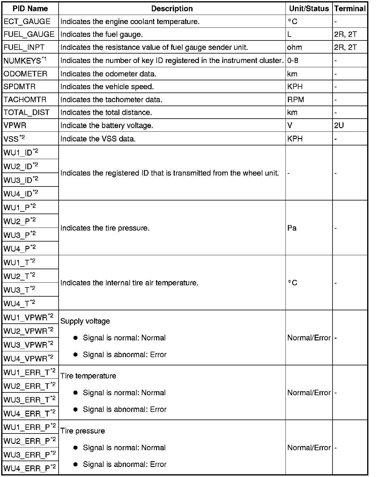 PID/DATA MONITOR TABLE [INSTRUMENT CLUSTER]