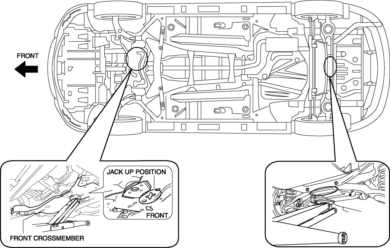 - Improperly jacking a vehicle is dangerous. The vehicle can slip off the jack and cause serious injury. Use only the correct front and rear jacking points and block the wheels.