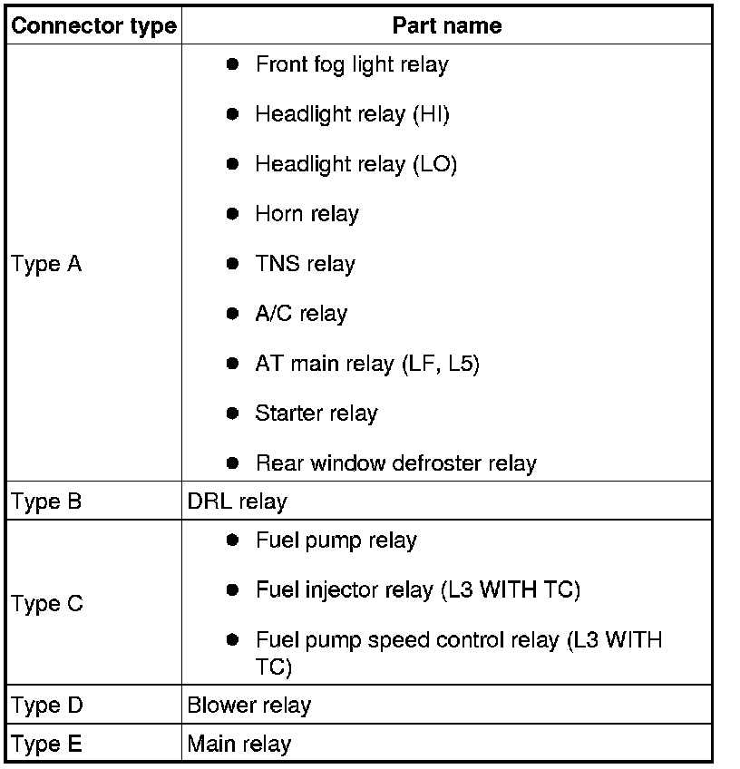 - If not as indicated in the table, replace the relay.