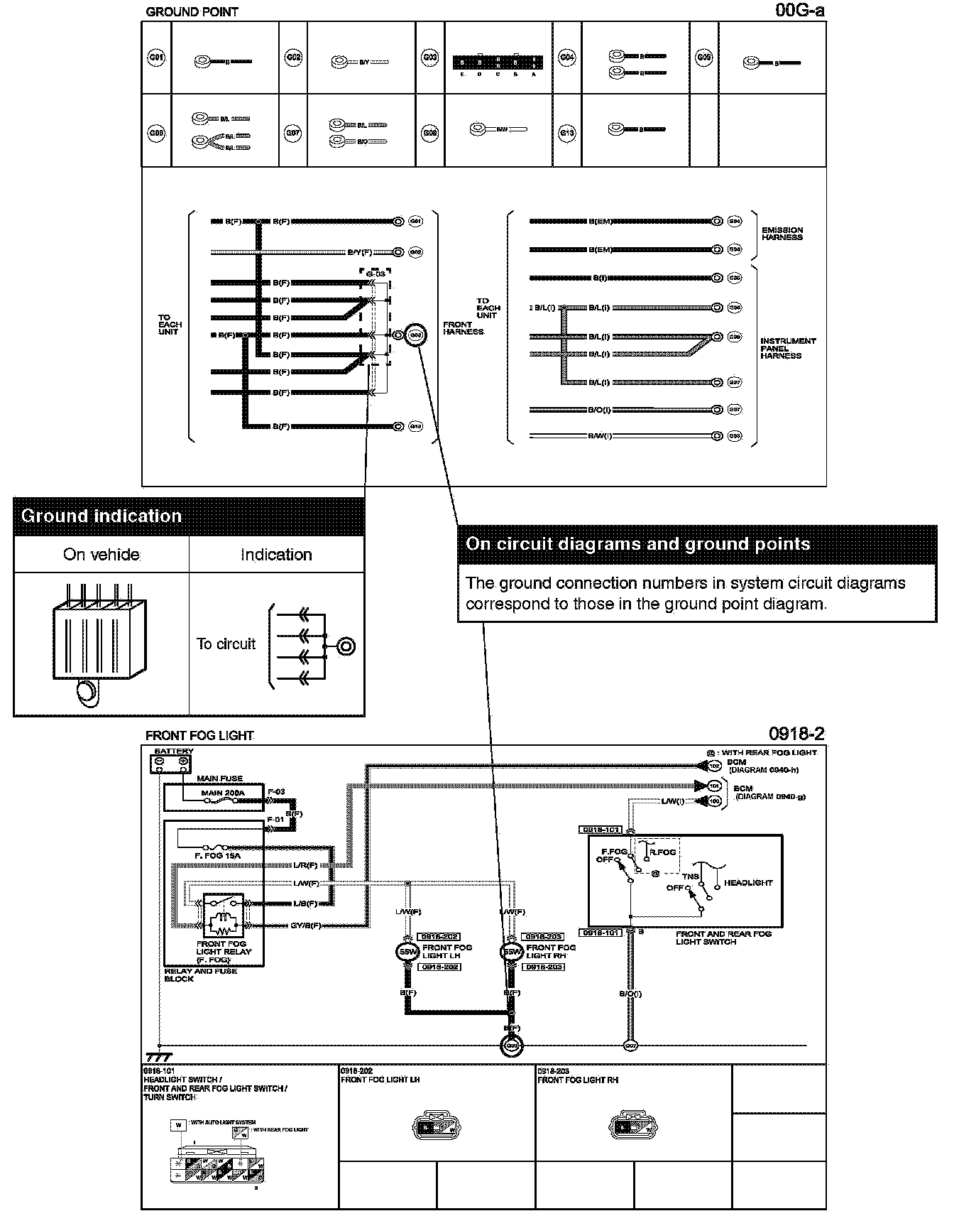 This shows ground points of the harness.