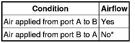 The check valve is normal if the aeration to port A is 3.5 kPa/min {0.03 kgf/cm2 min, 0.5 psi/min} or less when 130 kPa {1.32 kgf/cm2, 18.9 psi} is applied to port B.