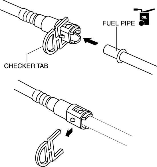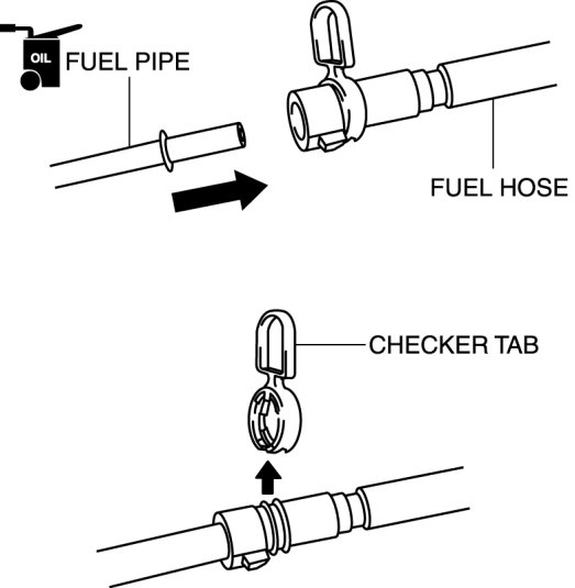 - A checker tab is integrated with the quick release connector for new fuel hoses and fuel hoses. Remove the checker tab from the quick release connector after the connector is completely engaged with the fuel pipe.