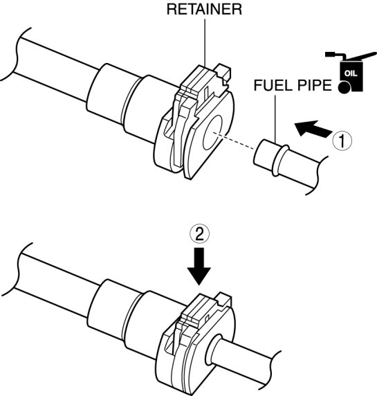 - If the retainer cannot be pushed down, push the fuel pipe further to the quick release connector.