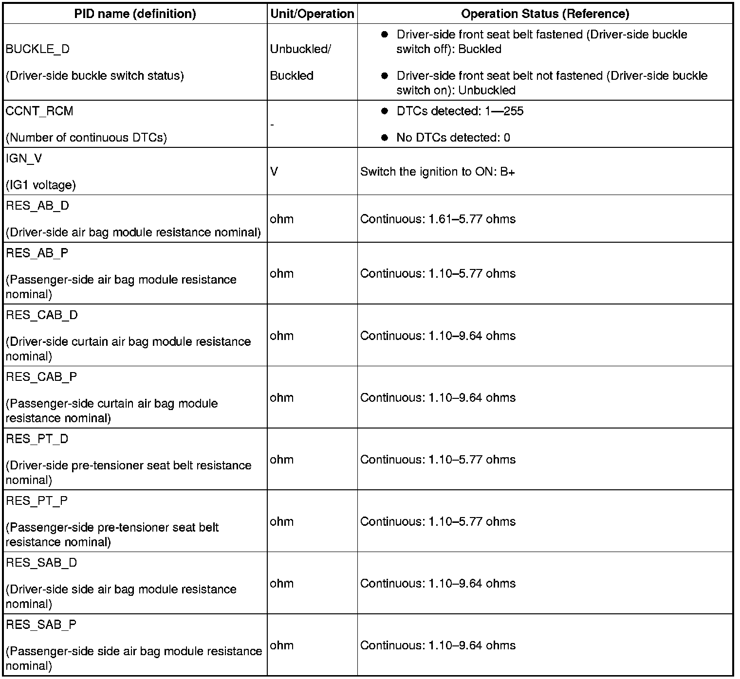 PID/DATA MONITOR INSPECTION [STANDARD DEPLOYMENT CONTROL SYSTEM]