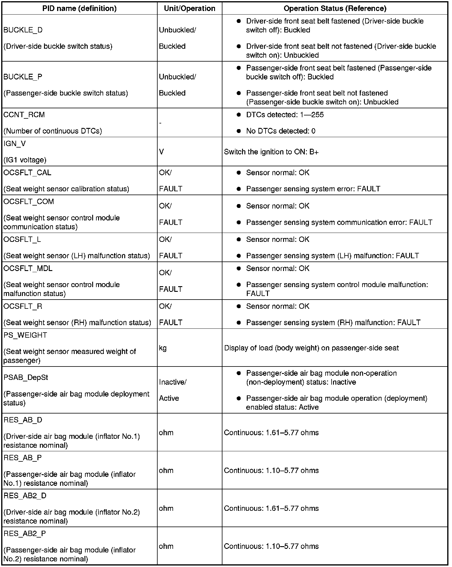 PID/DATA MONITOR TABLE [TWO-STEP DEPLOYMENT CONTROL SYSTEM]