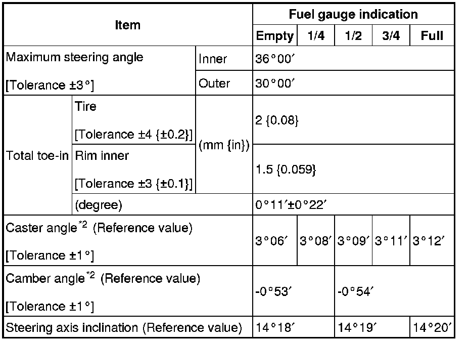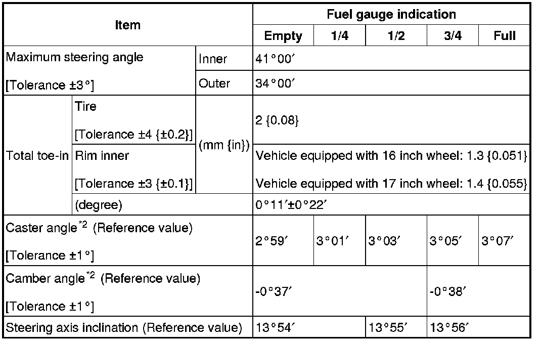 Front wheel alignment (Unloaded)*1 [L3 WITH TC]