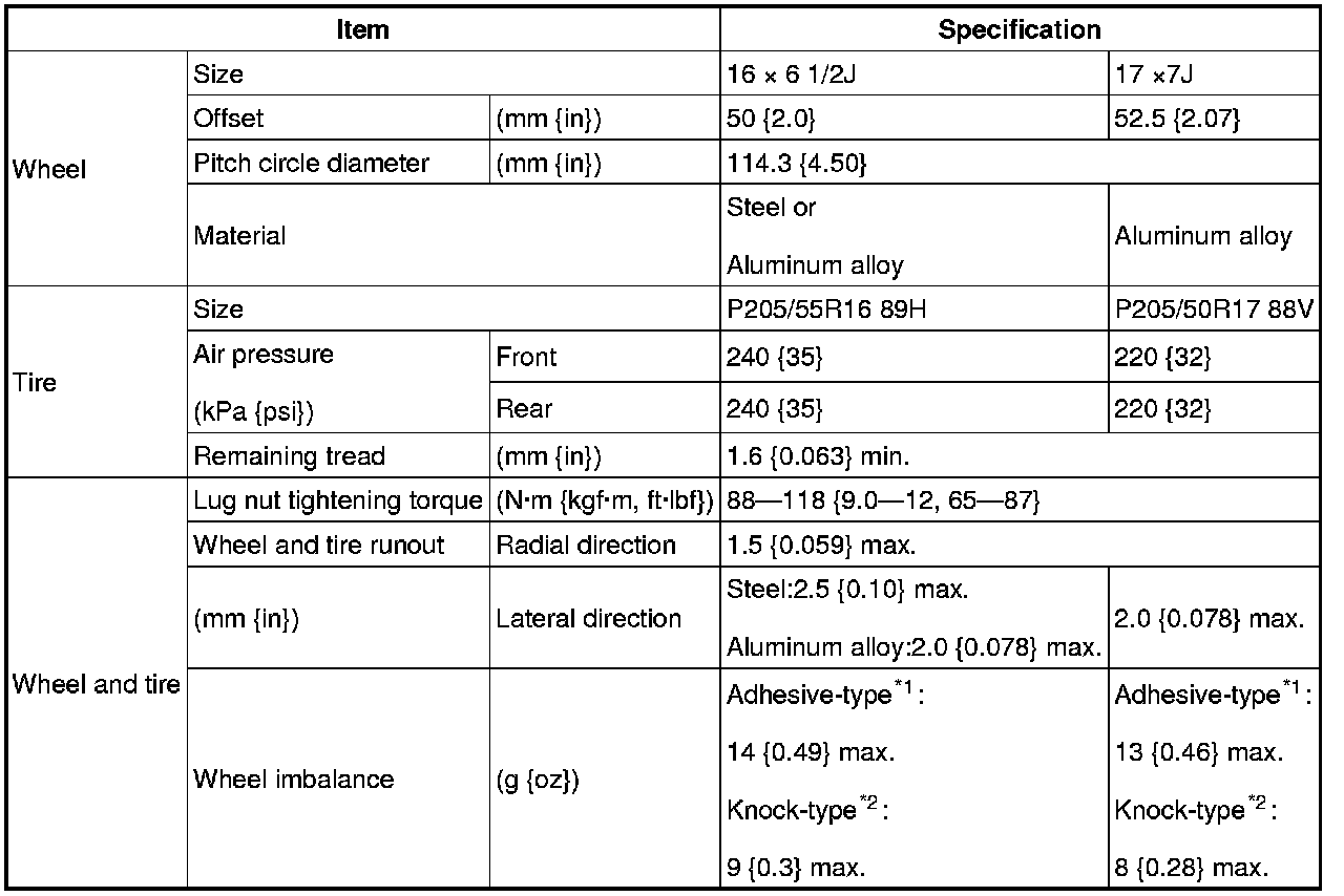 WHEEL AND TIRE SPECIFICATION