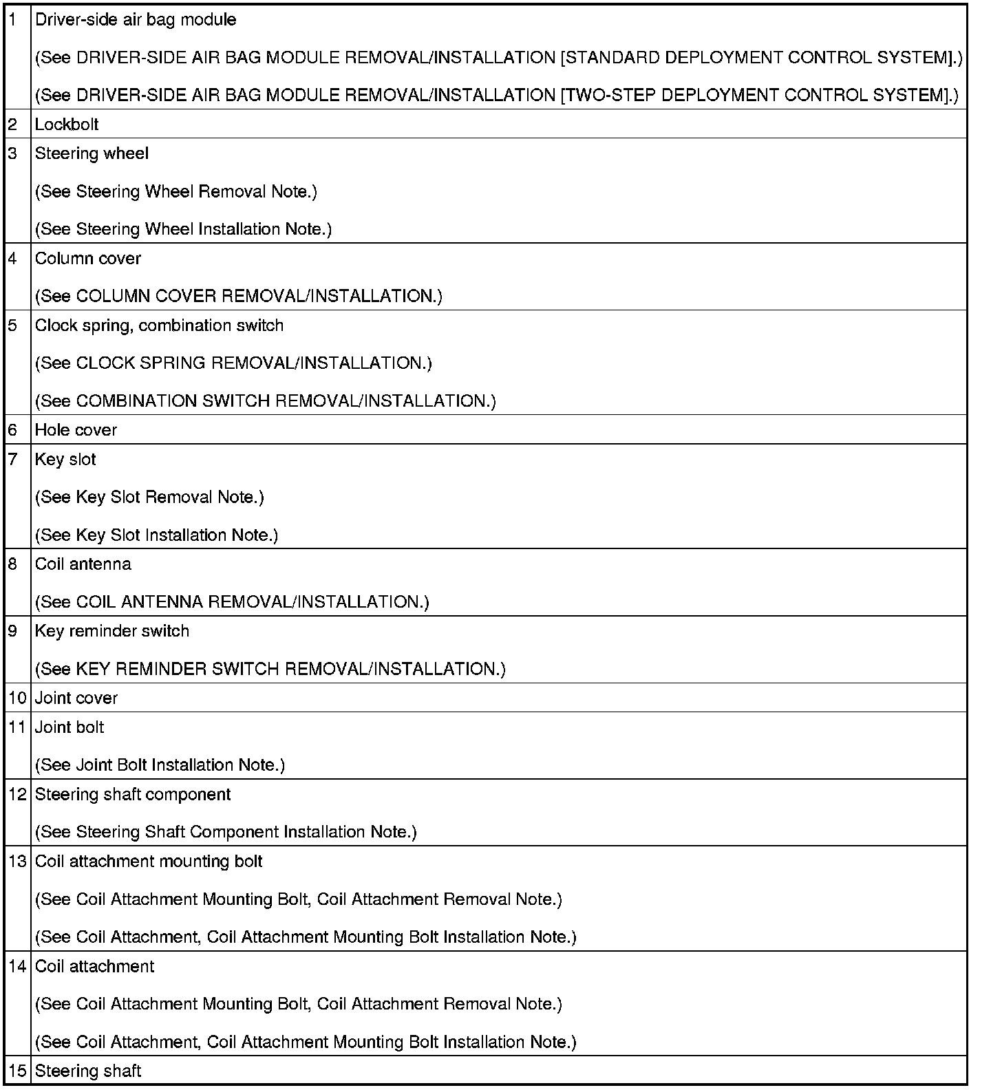 11. Remove in the order indicated in the table.
