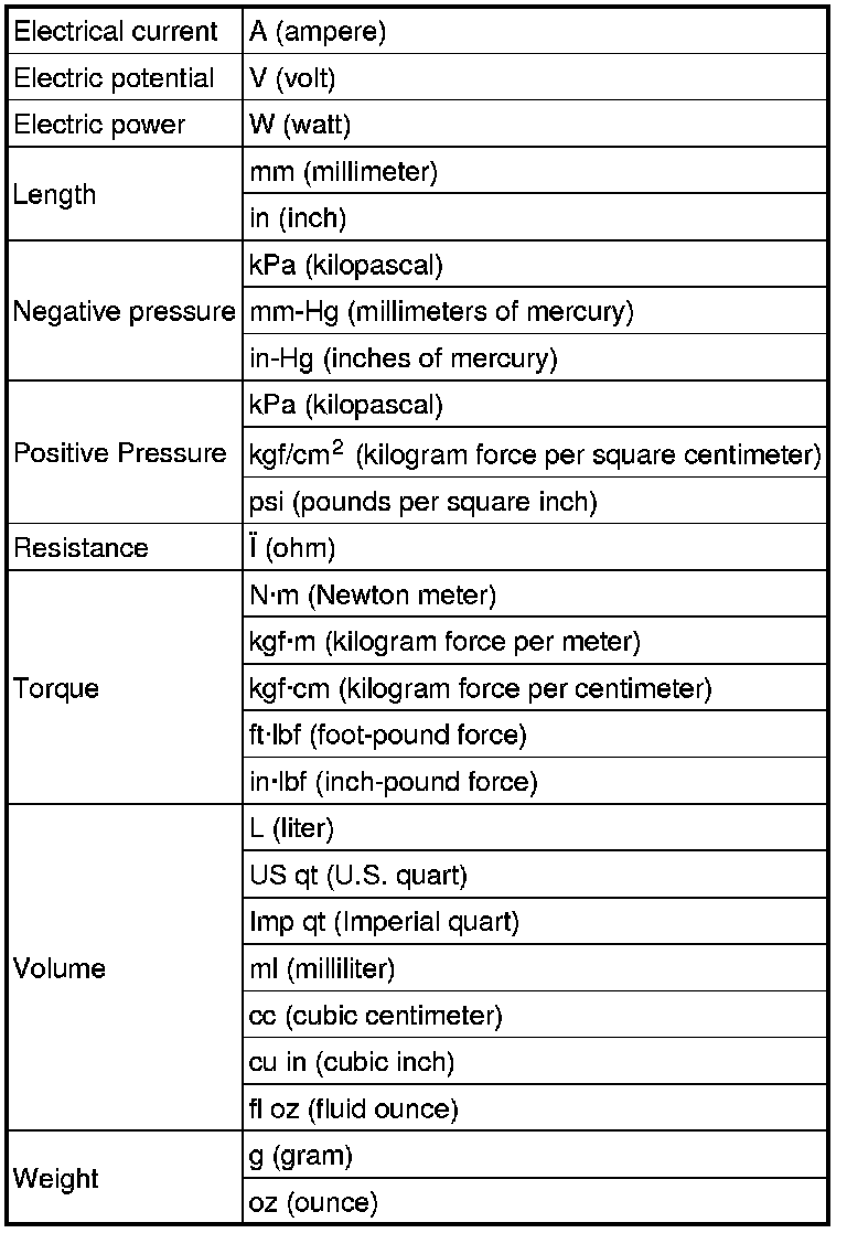 - All numerical values in this information are used on SI units. Numbers shown in conventional units are converted from these values.