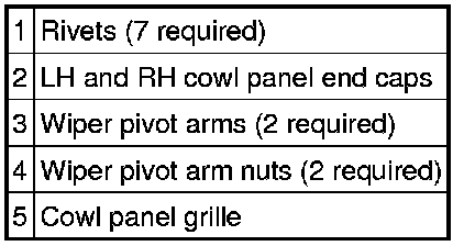 5. Release the cowl panel grille from the retaining clips and remove the cowl panel grille.