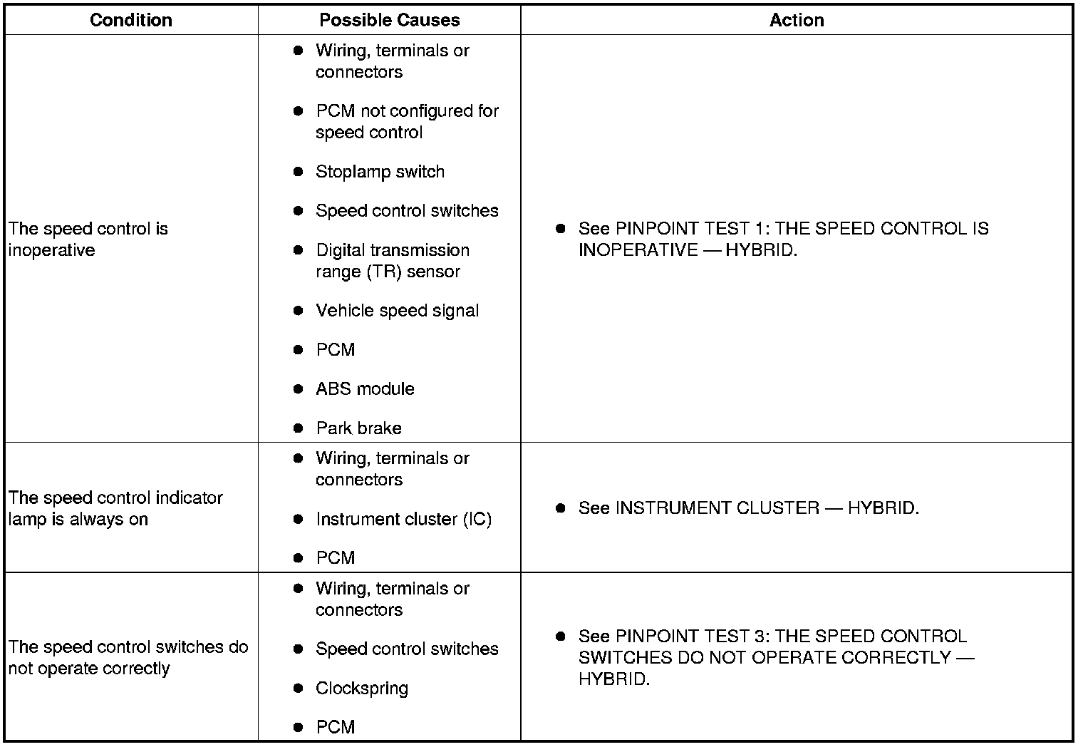SYMPTOM TROUBLESHOOTING CHART - SPEED CONTROL - HYBRID