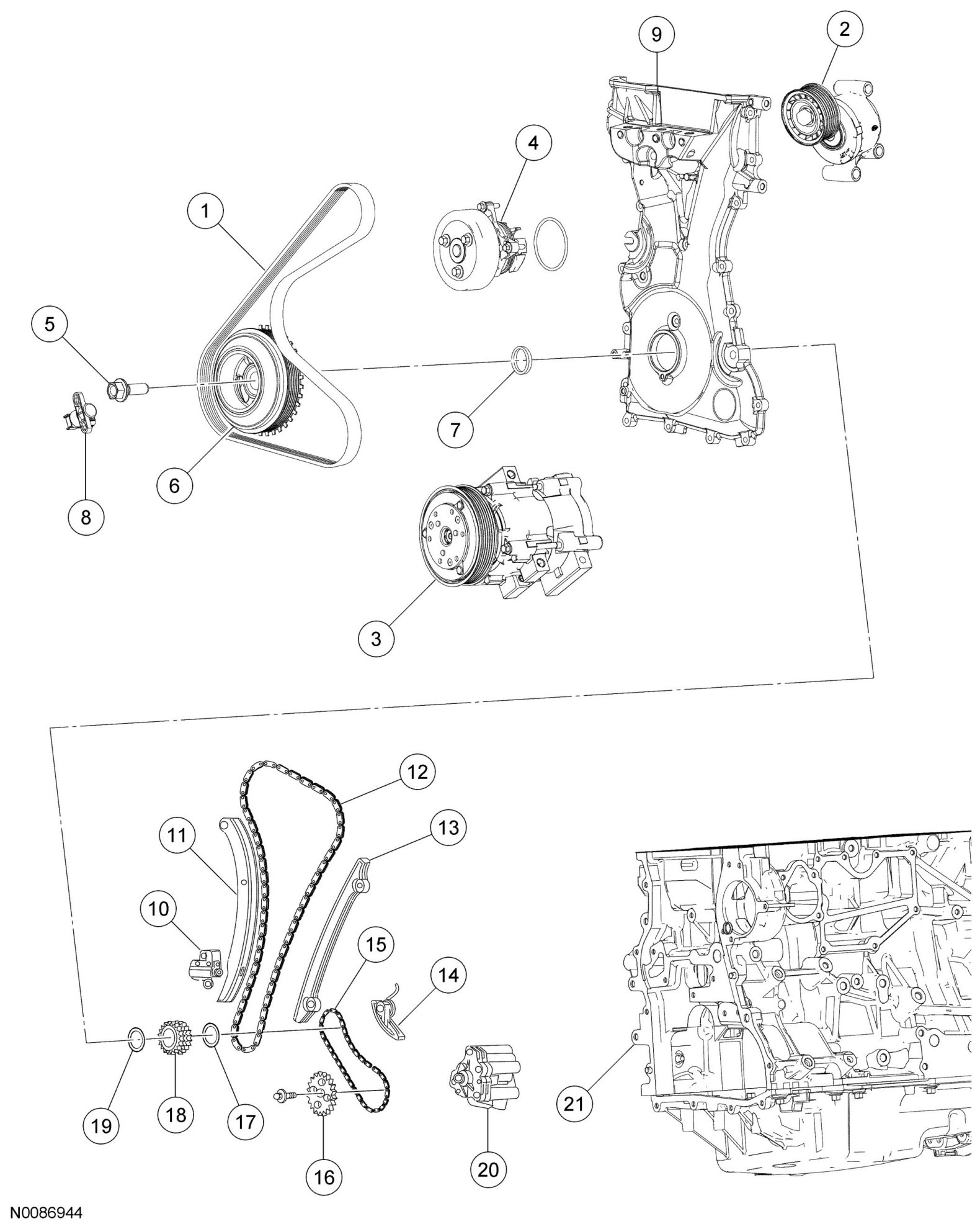FRONT ENGINE BLOCK - HYBRID EXPLODED VIEW