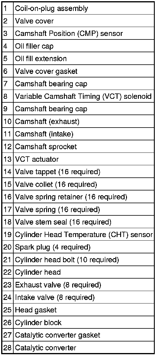 47. Install the camshafts and bearing caps in their original location and orientation. Tighten the bearing caps in the sequence shown in 3 stages.