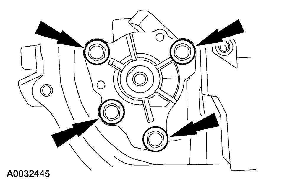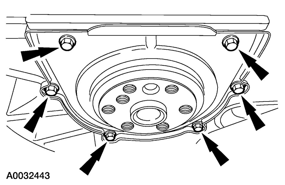 CAUTION:The crankshaft sprocket diamond washer may come off with the crankshaft pulley. The diamond washer must be replaced; remove and discard the diamond washer. If the diamond washer is not installed, engine damage may occur.
