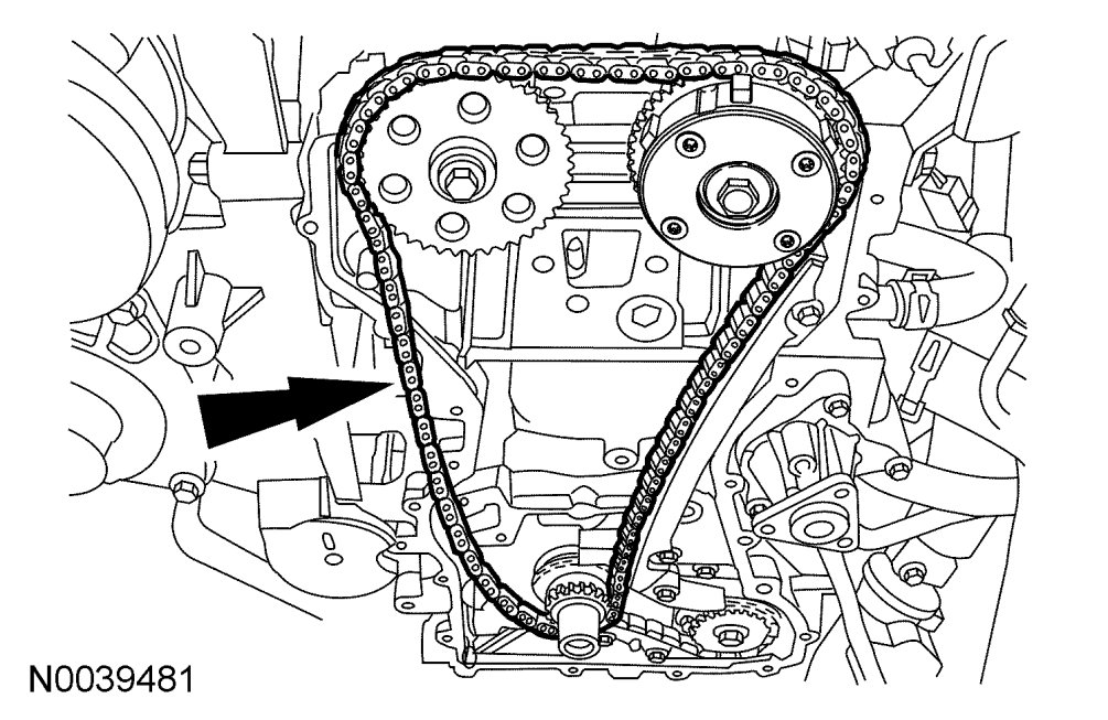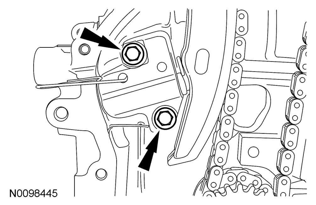 NOTE:If the timing chain tensioner plunger and ratchet assembly are not pinned in the compressed position, follow the next 4 steps.