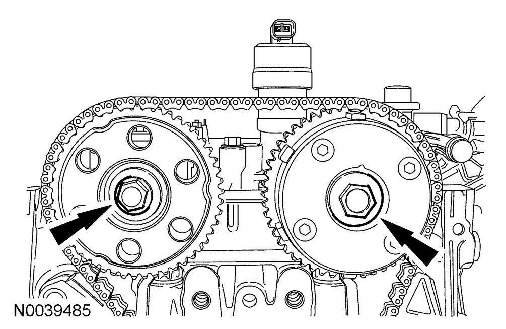 1. Install the camshaft sprockets and the bolts. Do not tighten the bolts at this time.