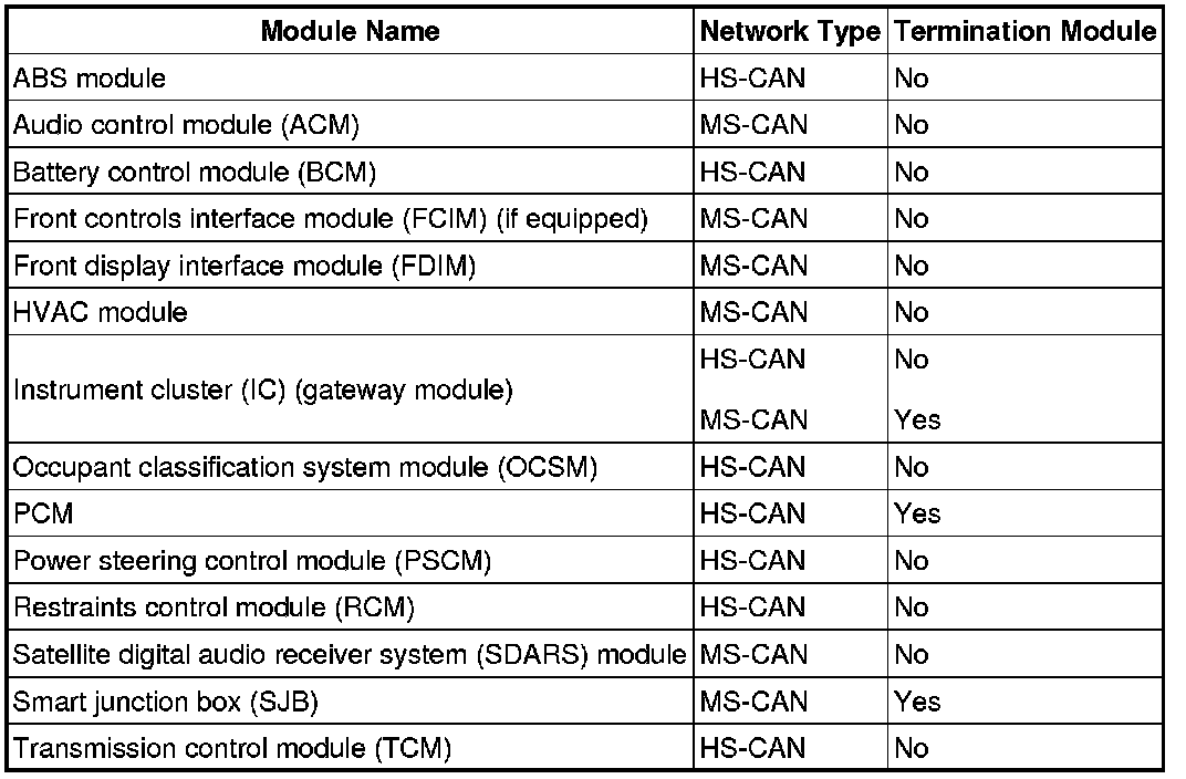 The instrument cluster (IC) is the gateway module, translating HS-CAN to MS-CAN and vice versa. This information allows a message to be distributed throughout both networks. The IC is the only module on this vehicle that has this ability.